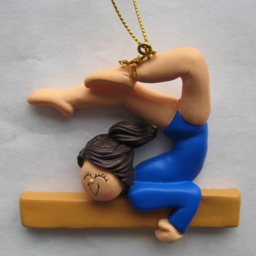 Great gymnastics ornament, or it can be used as a present topper. The is on a beam, and her feet are over her head. She measures 3 ¼ inches long and 2 ½ inches tall. The ornament is made of strong, long-lasting, yet lightweight polyresin. Each ornament is hand-painted.